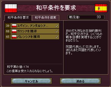 スペインの厭戦感情100%になっても要求値が減りませんでしたので・・・・