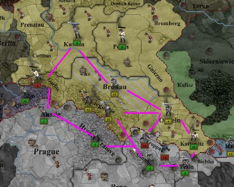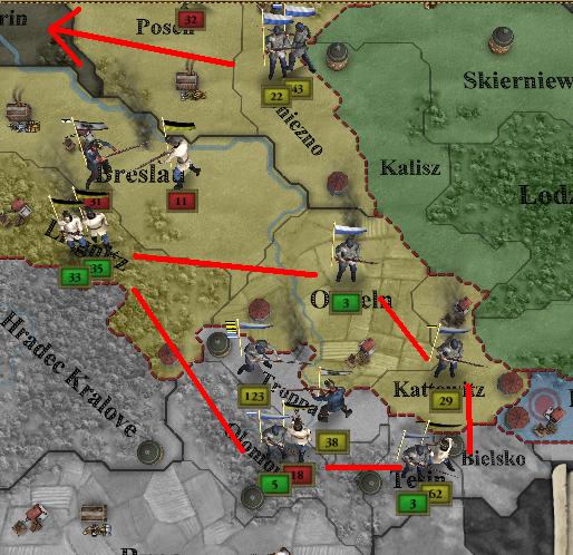 グニエズノの敵は片付きました。リーグニッツ、トロッパウでは包囲網が完成し、なおも戦闘中です。