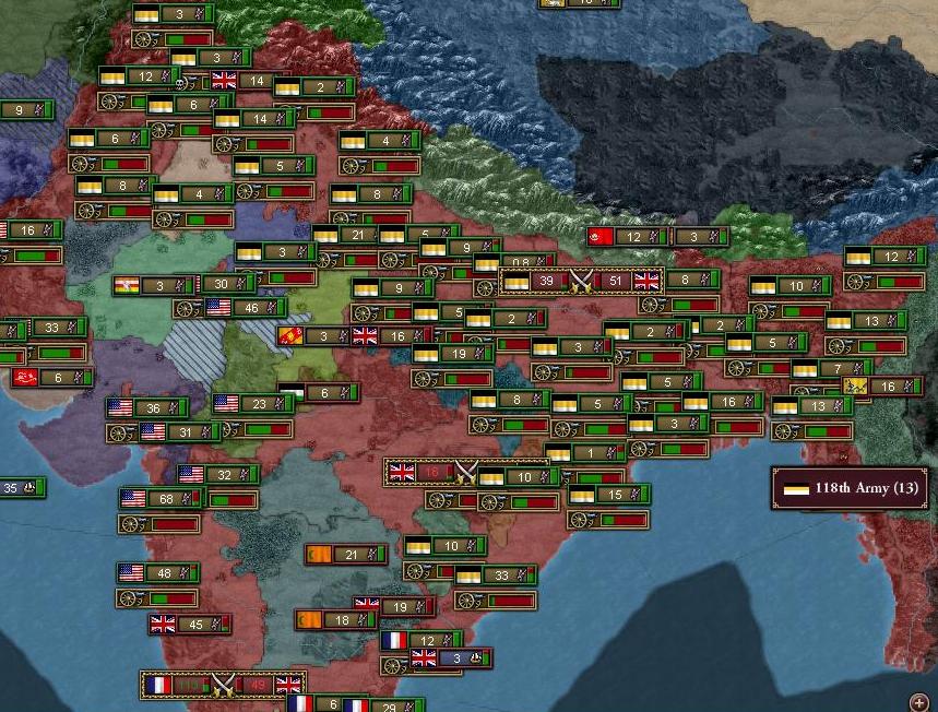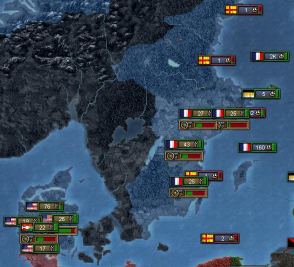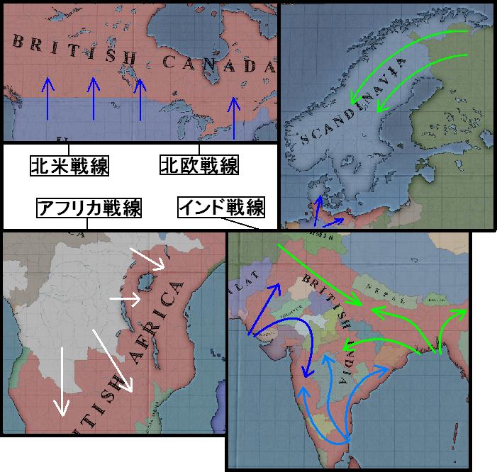 アフリカ・インドは現地で生産されたばかりの少量の師団と、駐在していた分艦隊が抵抗を見せるくらいだ。
