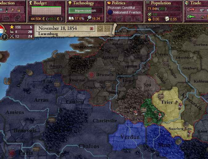 見よヒゲよ。ベルギーからワロニア全土を得たお陰で我が国は7プロフィンスの国土を持つようになっておる。一気に国土は7倍に拡大しておる。