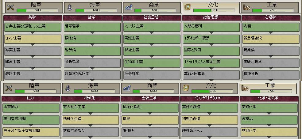 1860年時点の研究、プレイ中メモし忘れた