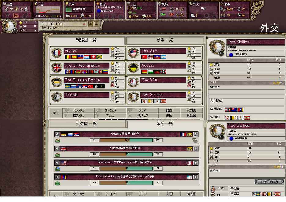 というかプロイセンの陸軍が0になってる。同盟する国間違えたかなあ(誰のせいだ