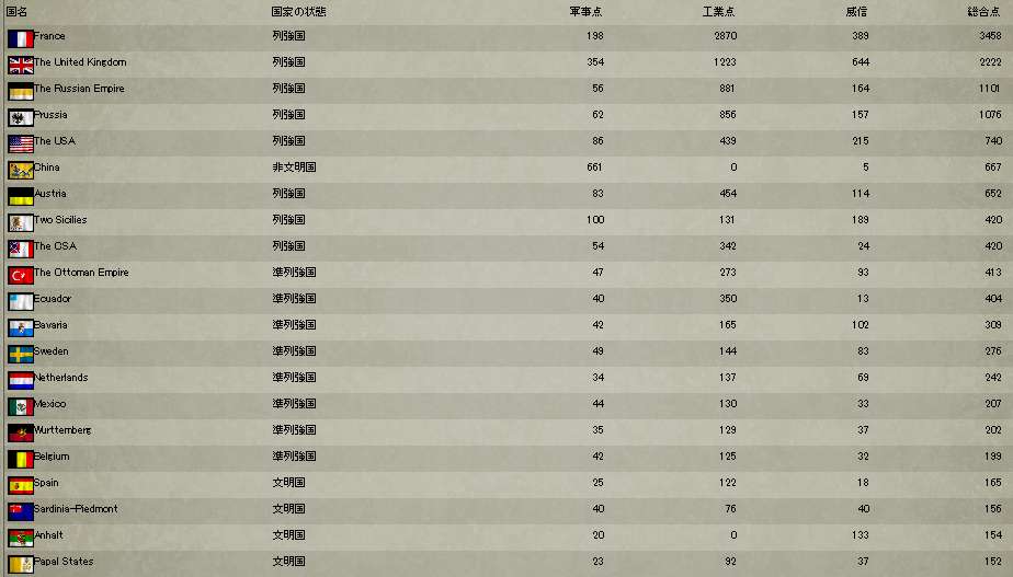 実質列強は7ヶ国とか言われてそう。なんでそんなに工業点伸びるんだ