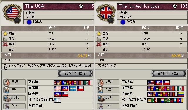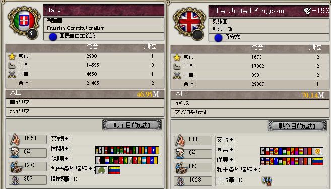 イギリス側はイギリスとオレンジ共和国、藩王国程度である。イギリスもプロシアと同盟を結んでいたが切られていた