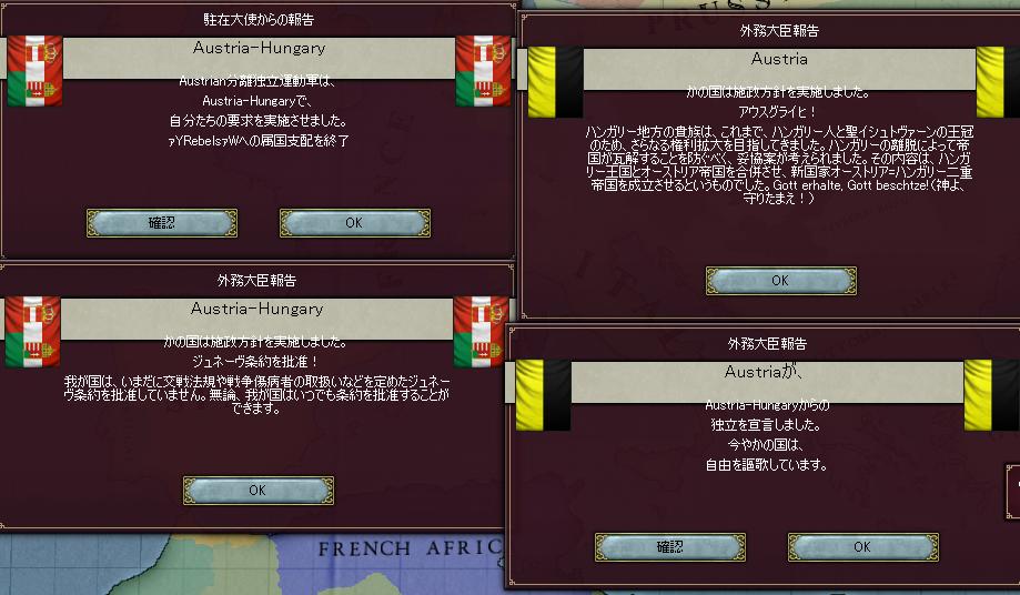 その後、両国が1日おきにアウスグライヒを実行し入れ替わり続ける