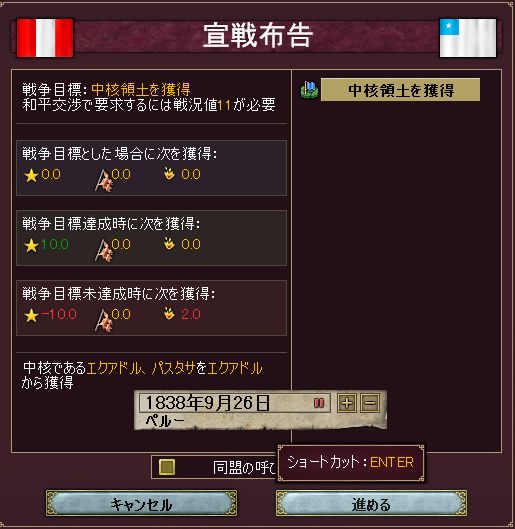 ペルーの潜在的領土であるエクアドルに単独宣戦布告