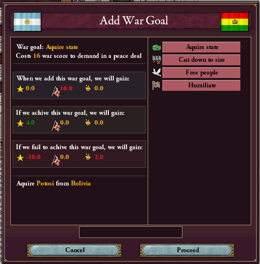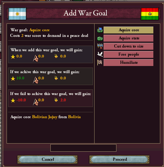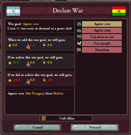えっと・・・今回の戦争の理由は中核州の奪回、目標ステートはAlto Paraguayっと・・・