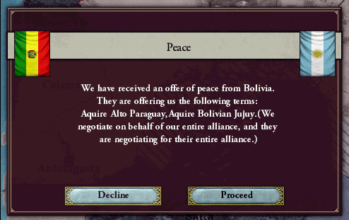 っとボリビアが和平を求めてきました