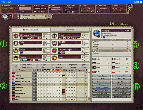 ②国情報・・・外交する国を地域単位で探すときに使う。列強になると影響を及ぼす度合いを調整したりできる