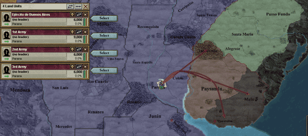 ウルグアイは4プロヴィ、わが国には4師団あるわけだから、1プロヴィンスに1師団侵攻させればいいわけだ