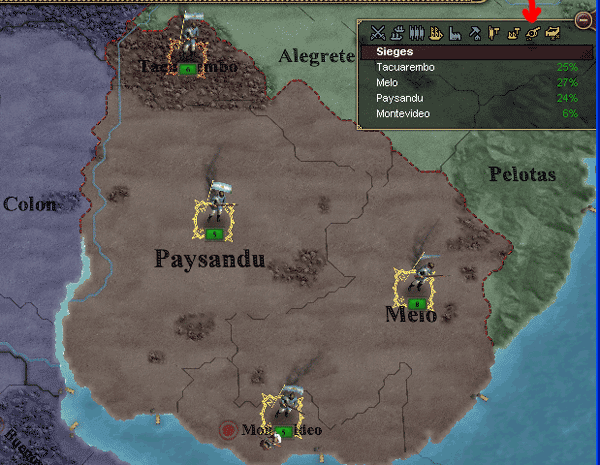 さっきウルグアイに宣戦布告するのに使ったアイコンが和平交渉に変わってるからそこをクリックして