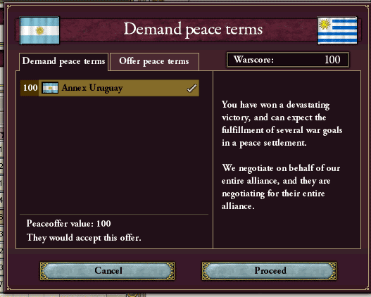 Annex Uruguayにチェックを入れて、Proceedで和平を提案っと