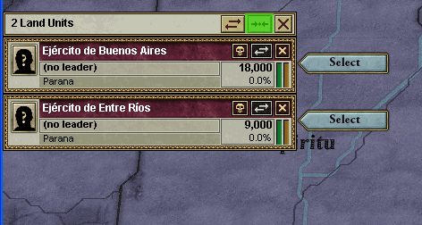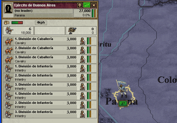 ブエノスアイレス周辺に9と18とかかれた軍隊が見えます