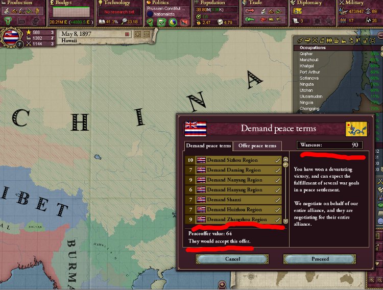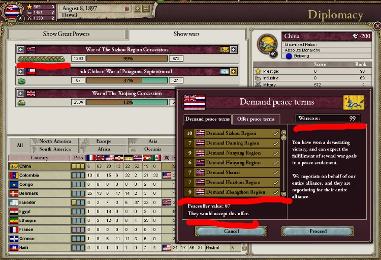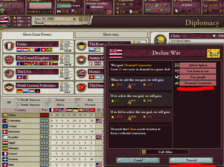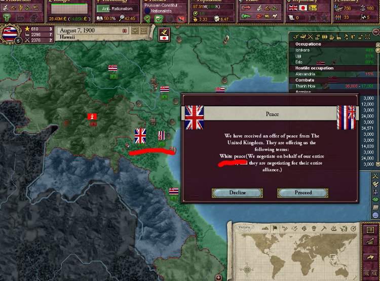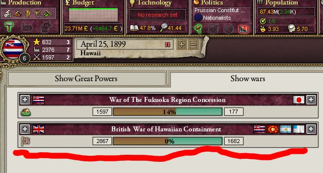 アワワワワ……現在WarGoalを9個で和平は飲むようです。Infamyは既に47.98です。もう後戻りはできません……。