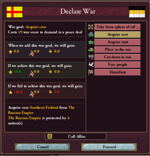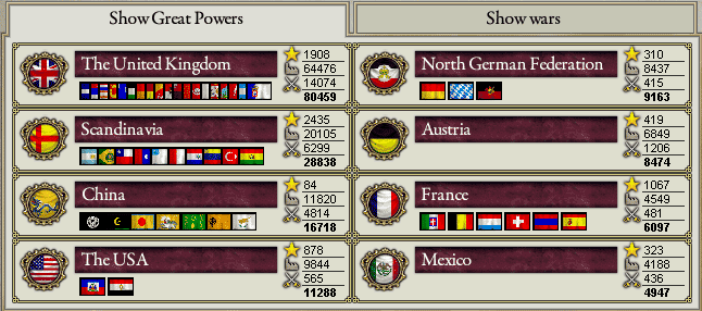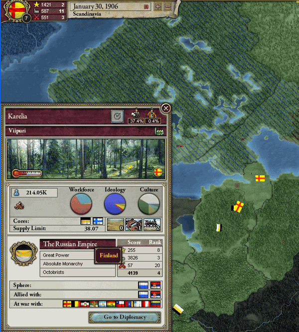 この千載一遇のチャンスを生かしてフィンランドの同胞を解放すべく、スカンディナビアは北ドイツ連邦とベルギー、南アメリカの友邦*1を巻き込みロシア帝国に宣戦するのだった