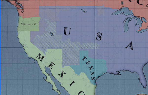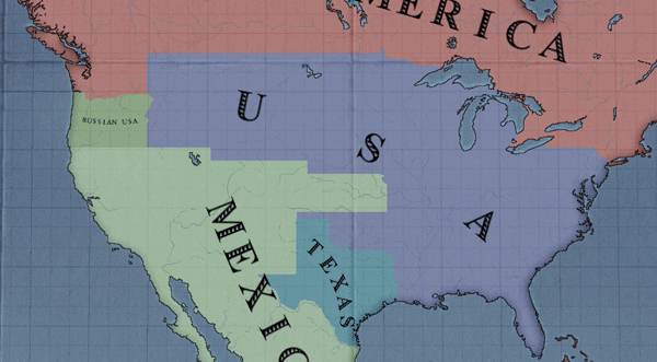 独立テキサスから、メキシコにボディブローを打ち込まれて残念なことになっている合衆国からロシア領USAという胡散臭い領土まで何でもござれである