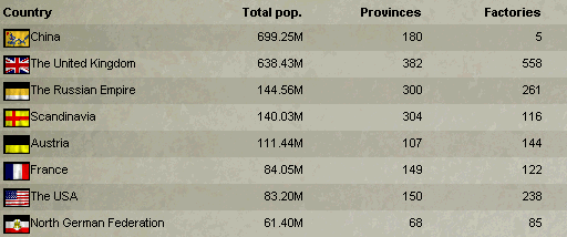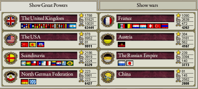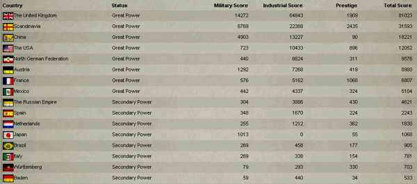 それに加え、ロシア、オスマン帝国、南アメリカの全ての国を影響圏に治め、三大陸にまたがる大帝国となったのだった