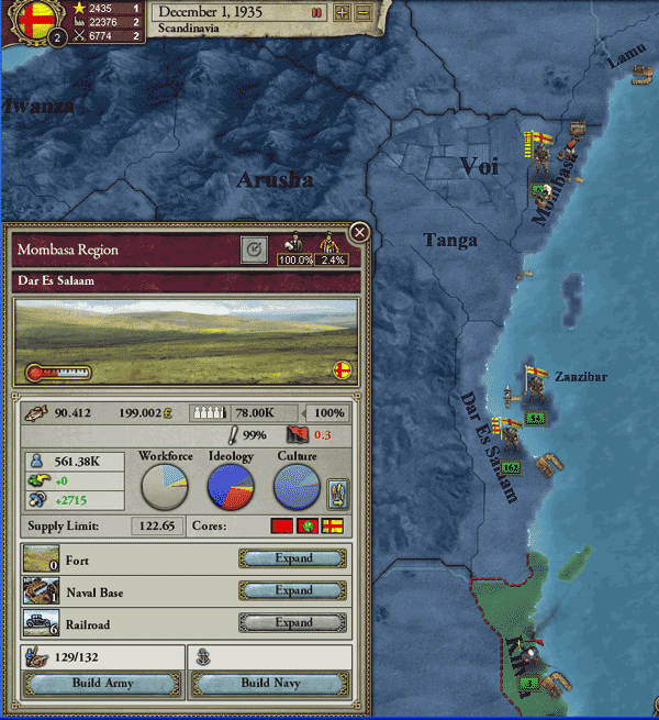 オマーンから奪ったザンジバルの辺りだが、なんと1プロヴィで120師団以上を生み出している