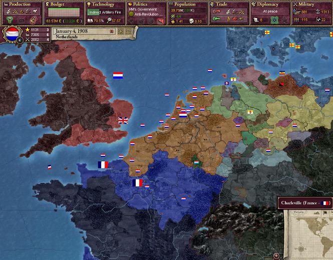 石油、電話、蒸留酒はほぼ全部スペインが買い占め 日本はともかくスカンジナビア、オランダは購入できないという状態に もう既に市場は崩壊していた気がするがドレッドノートが作れないという実害があった 幸い食料品は全時代通して買えたのでPOPが飢えるという状態はなかったが