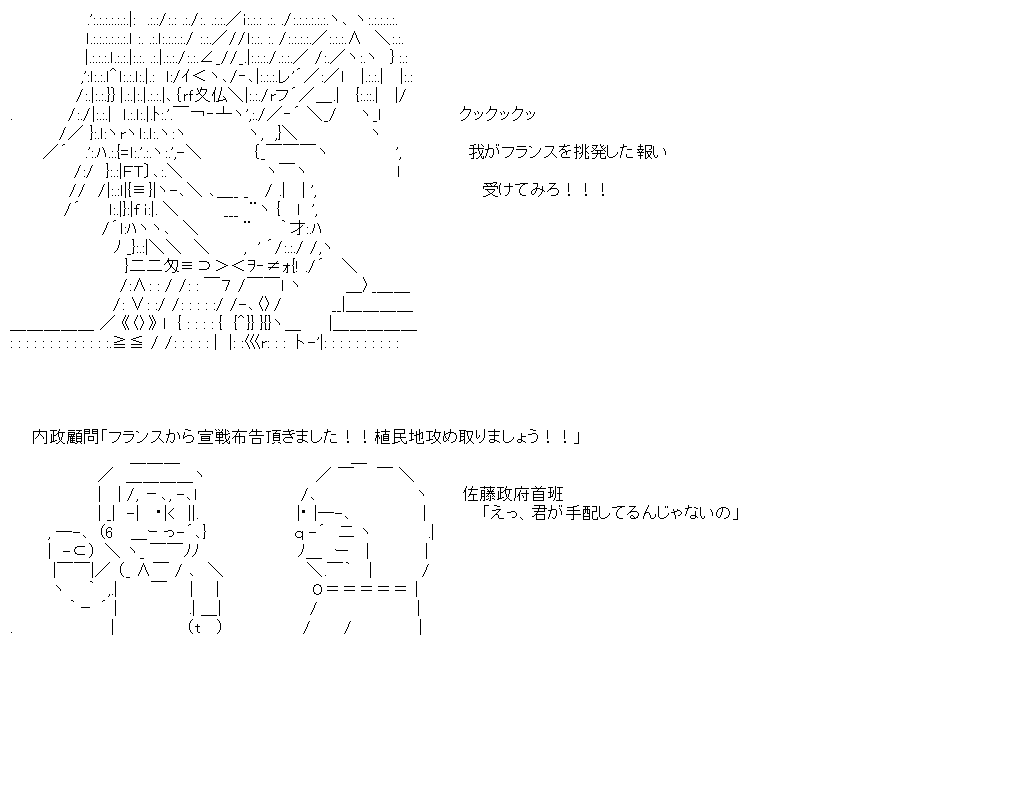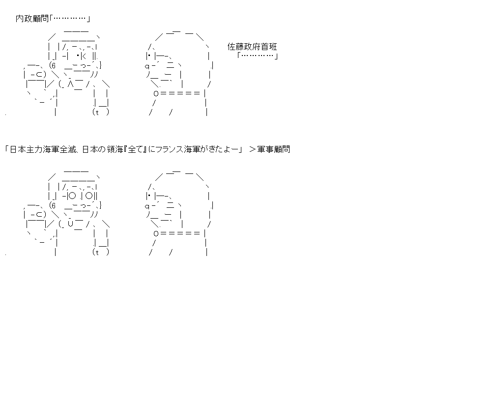 外交顧問:「ちなみに開戦前のフランス海軍艦数は『248』、対して日本は『72』。戦う前から結果が分かると言う」