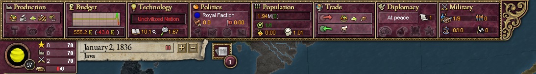 ファーザー「簡単よ。オランダでプレイを開始して、政治タブのReleaseNationsからJavaを選択するんじゃよー」