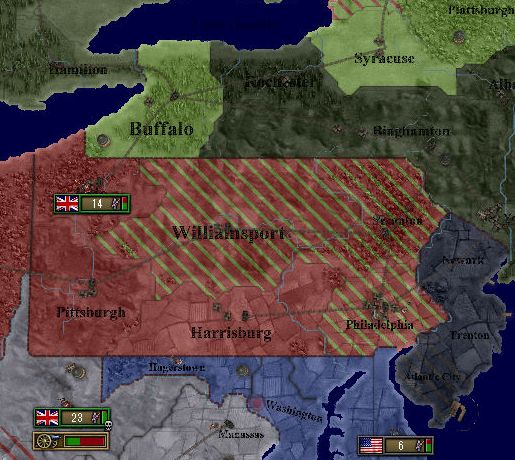 アメリカ大陸にいたイギリス軍は壊滅。半分近く占領されています。