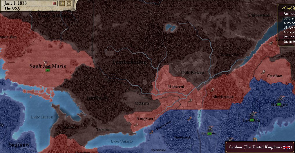 まず紛争地域たるカリブーを占領し、在加英軍をおっかけっこの末殲滅。