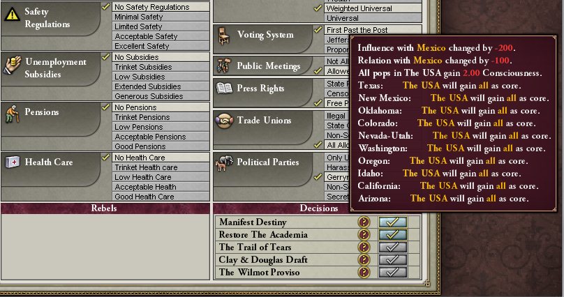 そもそも「明白な運命」のデメリットによりメキシコへの影響力は最低レベルへ落ちます。