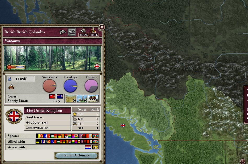 どこか小国でぼけっと100年過ぎ去るプレイをすれば、大抵ここが大英帝国に次ぐ2位になると思います。