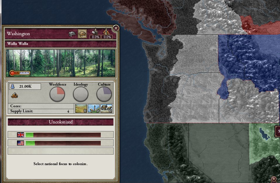 なお、この頃には初期に入植したワシントン、オレゴンはこちらのものに。