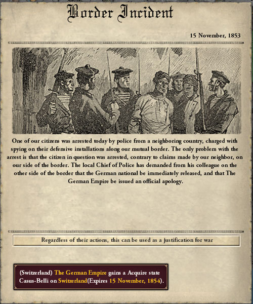 A.実は列強入りしたスイスと地味にバーデンの勢力圏争いをしていて、なかなか勝てずに手を出した。