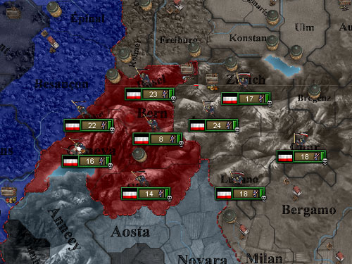物量で轢き潰して東スイスを割譲させ、講和。よきかなよきかな。
