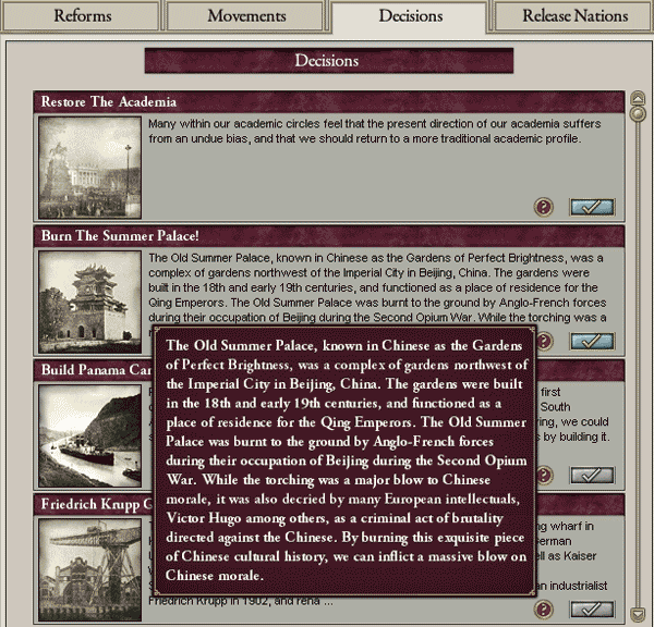 と、北京を占領したら『Burn The Summer Palace!』という行動が可能になりましたね。
