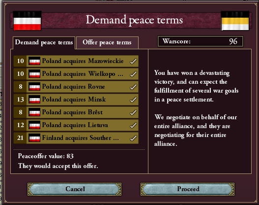 ポーランド(6ステーツ)とフィンランド(1ステーツ)の独立を認めさせます。