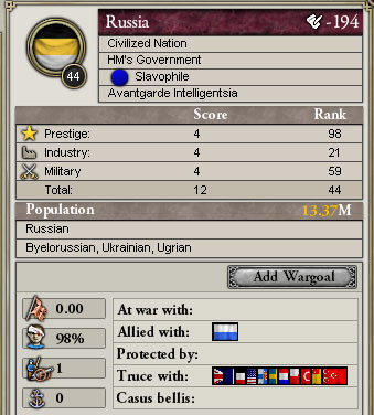 さらにドイツはアメリカ合衆国とも結んでおり、クラクフしか同盟国の残っていないロシア相手に