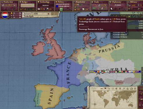 開始当初のオランダ。主用文化であるオランダ人の人口は驚くほど少なく、national focusは1ポイントしかない。