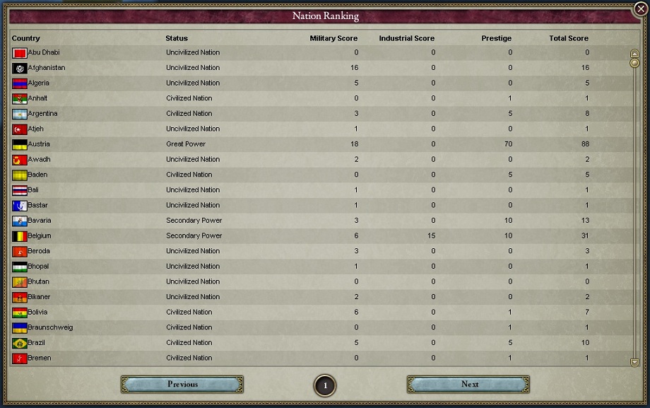 - インフォメーションスタック上の国家統計ボタンをクリックすると、プレイヤー国と世界中の全ての国の詳細情報に関する有益な情報が複数ページにわたって提供される国家統計画面が表示されます。