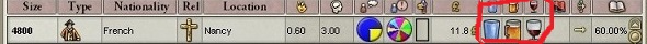 左からpopのサイズ、タイプ、民族、信教、居住プロビンス、闘争性(現状にどれだけ不満を抱いているか)、政治意識(どれだけ政治に関心があるか)、イデオロギー、要求する政策、失業率、所持金、生活水準を表す器マーク、二つ飛ばして識字率が表示されています。