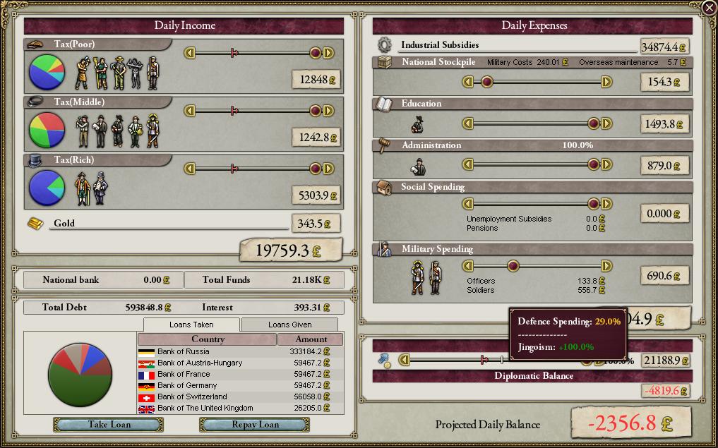 最終的に、禁断のLaissez Faireへと手を出す事で経済難を乗り越える事が出来たものの・・・お先はまだまだ暗い。