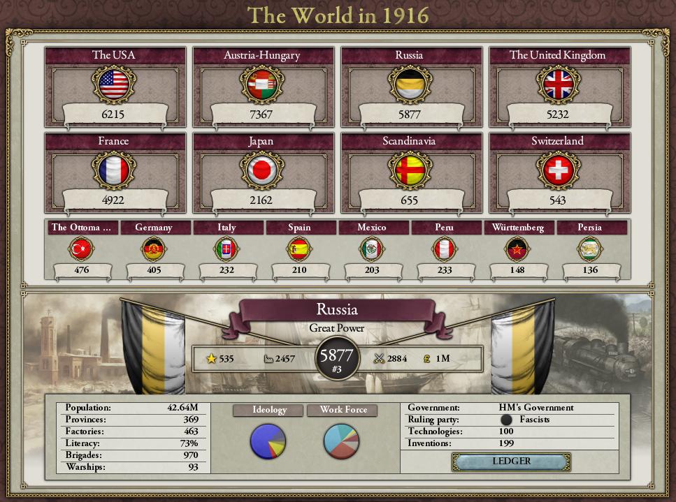 ロシアも、工場政策で最後の追い上げを狙うために、政党をJingosimとState Capitalismを持つFascistに変更した。