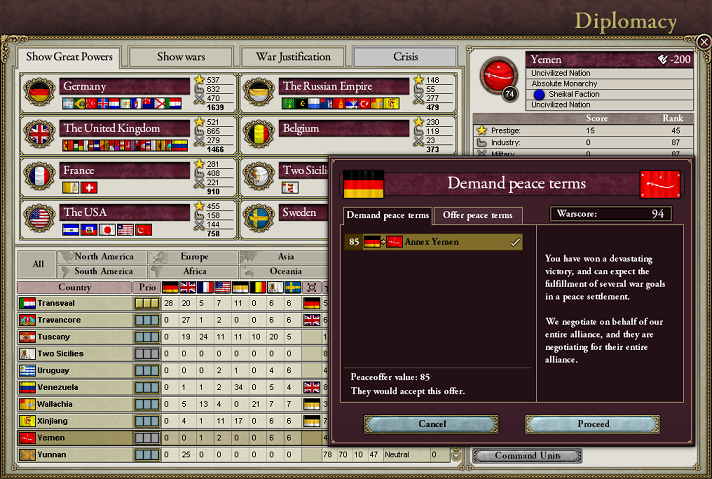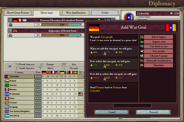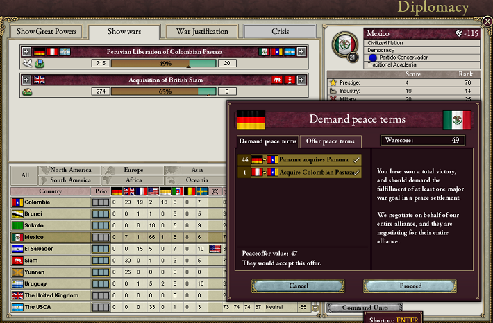 よしー。パナマ独立……とどっかのステート要求で和平できそう!