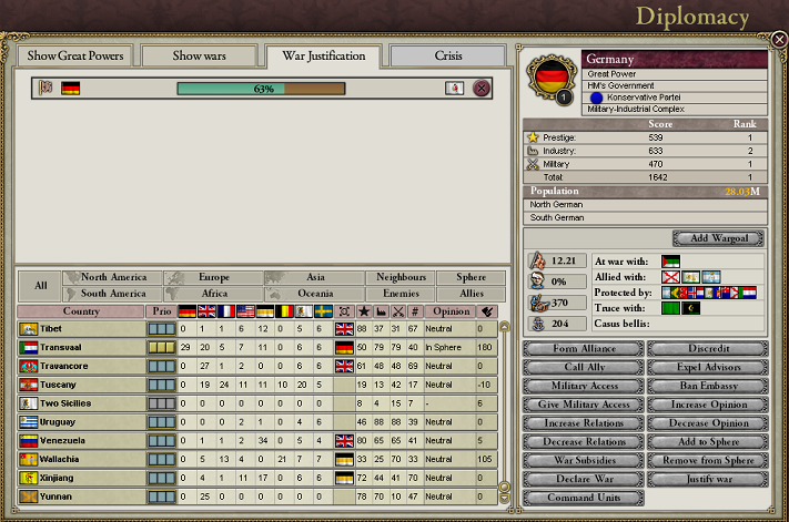 よくばらないことだね。自分の領土やSecondaryPowerになりそうにない国で周囲を囲ってしまえば他の国は手を出せなくなるよ。そういうところには後で植民するようにしたらいいよ。