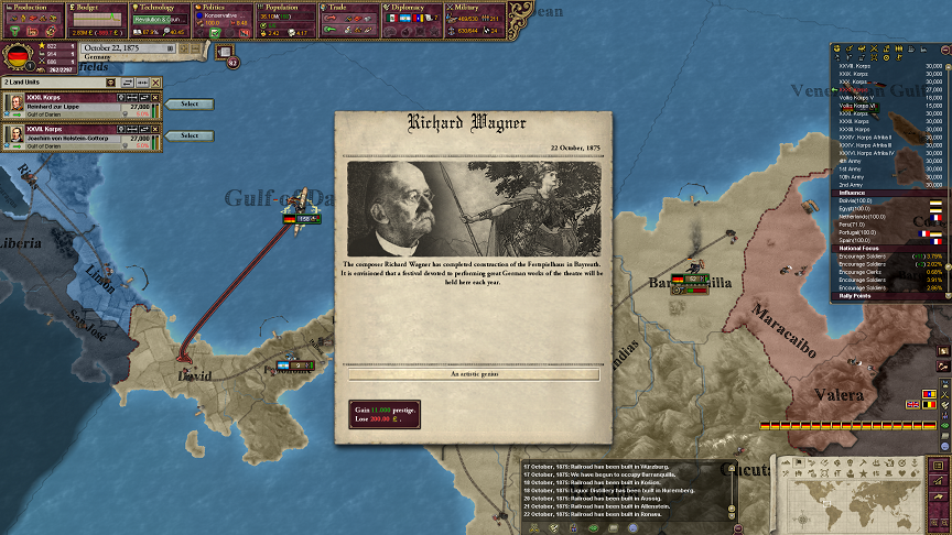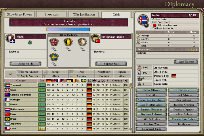 そうなんだよ! みんなパナマ運河をつくりたいからさ。勢力圏に入れようとしてFriendlyで牽制しあってるって、よくあるんだ。いま参戦したら、AddWarGoalでFreePeopleのパナマ独立ができるんだよー。こんなチャンスないよー。