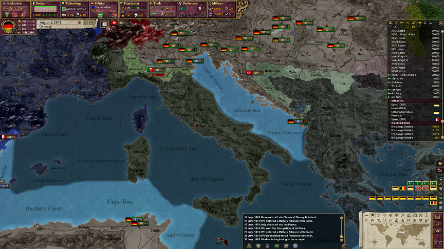 おや。イタリアがいつの間にか誕生してる……。そして、パルマを攻撃してる。