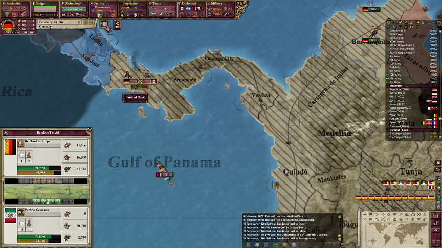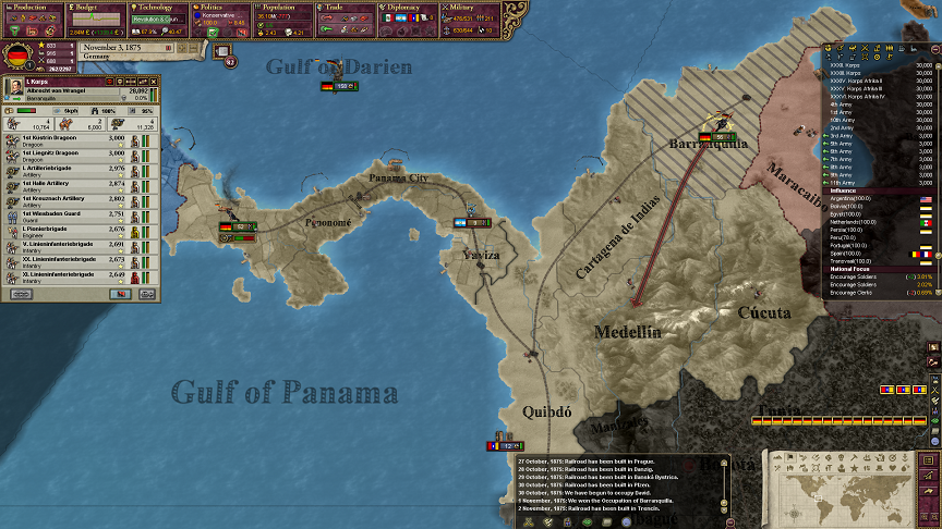 防衛には簡単だけど、コロンビア全土を占領してもパナマ独立無理そうだなぁ……。。