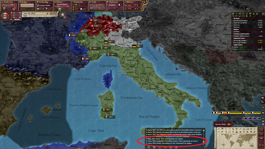 二つめはね、ほとんど運なんだけど。半島にあるイタリア人の国のどこかがガリバルディの赤シャツ隊によって革命を起こされると、イベントが起こってイタリア統一がなされるよ。