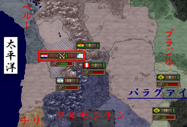そしてボリビアとは直接戦争を行っていないエクアドルとパラグアイが激突をしている状態です。