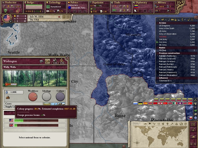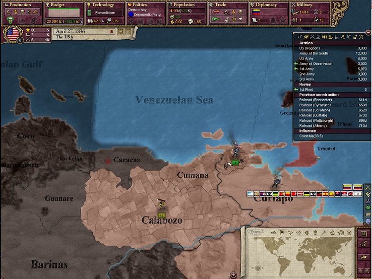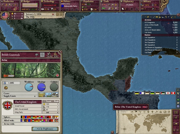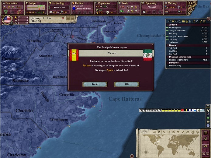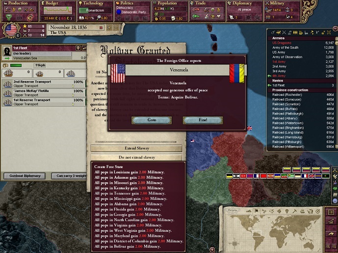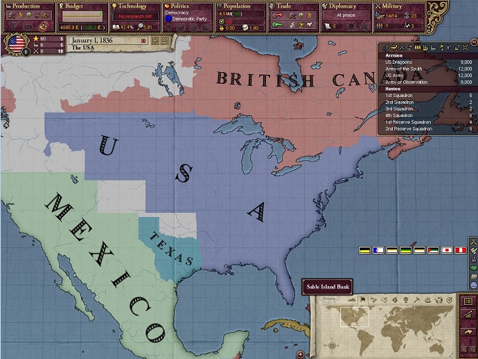 ちなみに正攻法だとテキサス介入→勝利→マニフェストディスティニー→米墨戦争→イギリス介入→\(^o^)/がオチですからね。