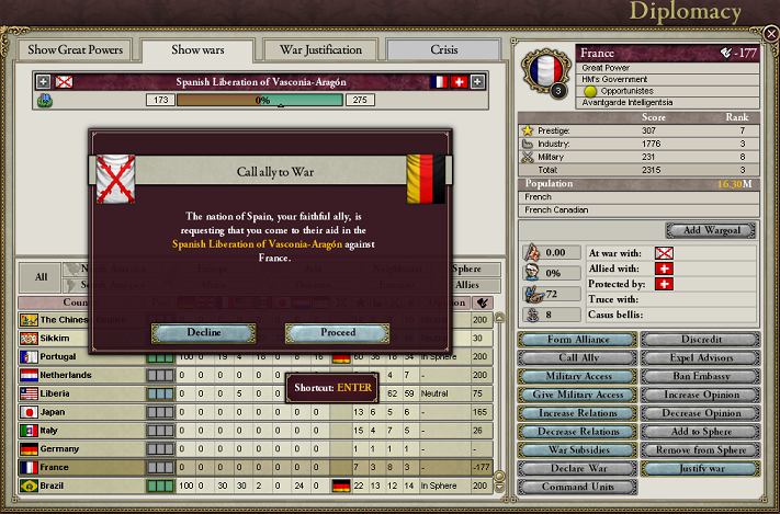 スペインが……フランスと喧嘩し始めた……。どーする?