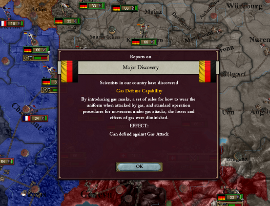中途半端な技術の軍だといまは毒ガス攻撃で一方的にやられるからね。おまけに占領もされて、向こう側に不要なWarScoreを稼がれるからめんどくさいんだな。